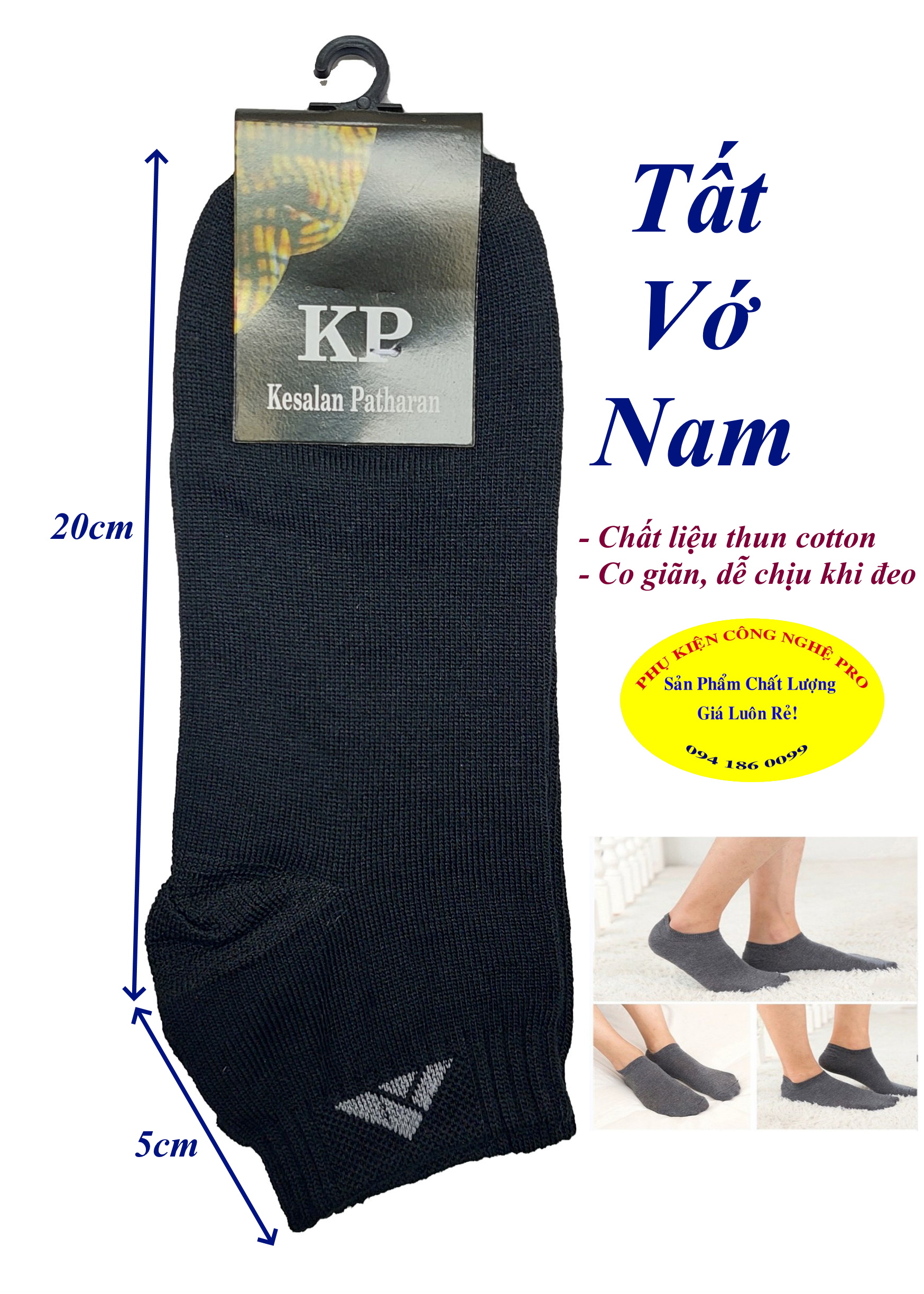 Tất vớ Nam kiểu ngắn cổ Nhãn KP Kesalan Patharan Chất liệu thun cotton, co giãn, êm, bảo vệ đôi chân, SX tại Việt Nam