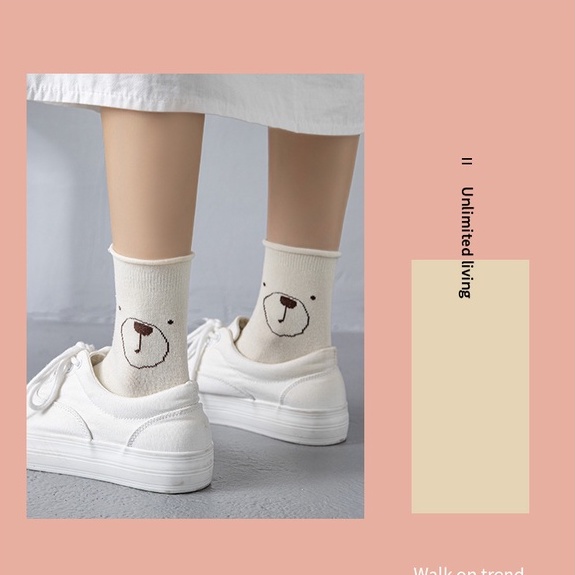 Giới thiệu Tất vớ nữ hàn quốc lolita xinh ấm chân vintage đẹp, cổ cao cute hình con gấu - Bim Store M40