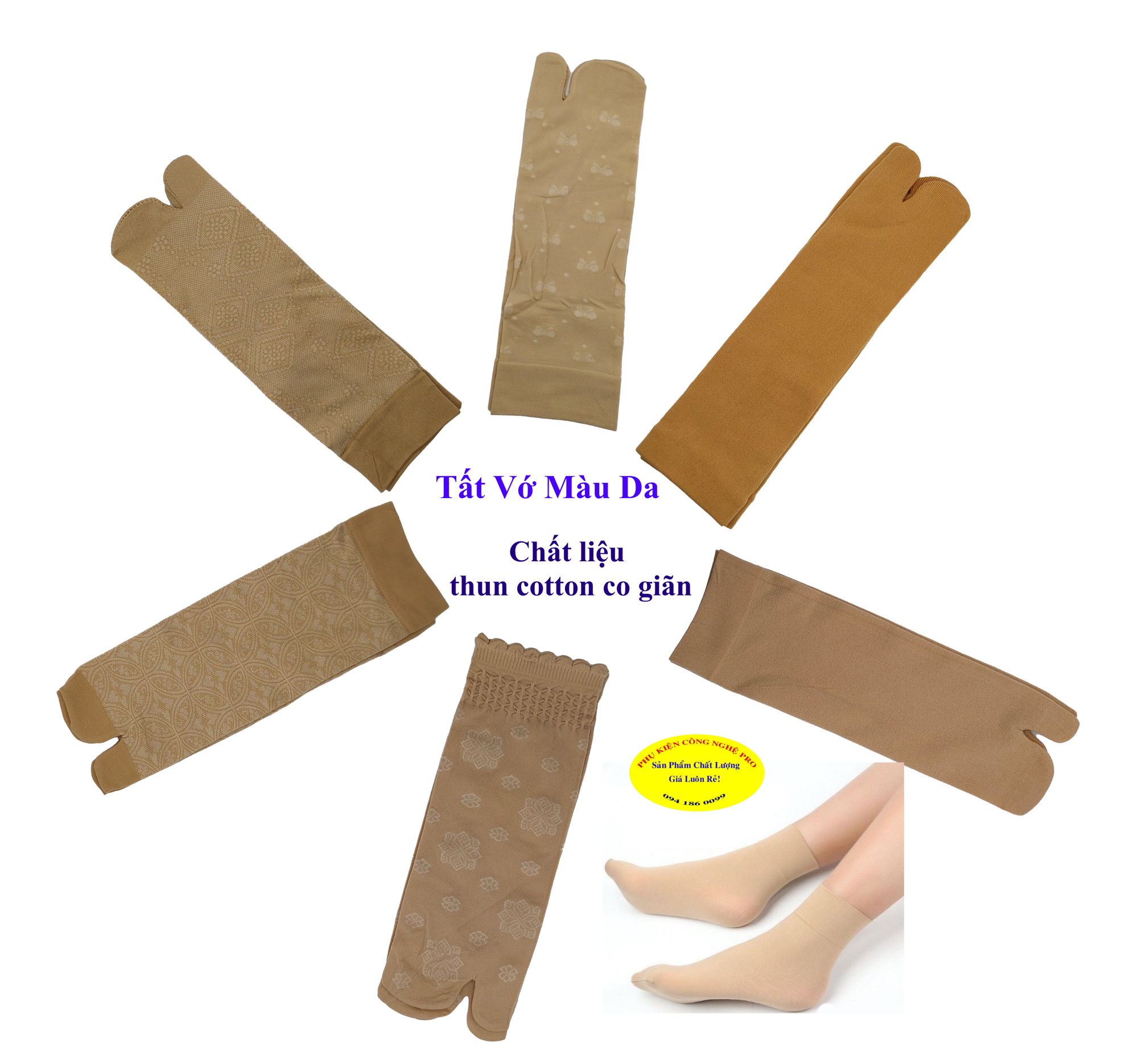 | Chất liệu | TẤT VỚ NỮ MÀU DA Loại xỏ ngón Chất liệu thun Co giãn Thoáng mát Dài 23cm Loại mềm mỏng |