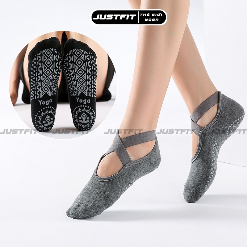 Tất - Vớ tập yoga pilates chống trơn trượt, có quai chéo gắn hạt silicon, đồ tập YOGA