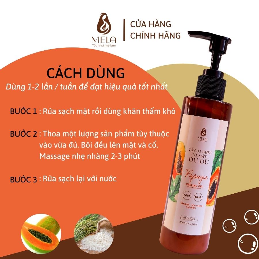 Tẩy Da Chết Mặt Đu Đủ MELA, Làm Sạch Sâu Lỗ Chân Lông, Tẩy Tế Bào Chết Giúp Sáng Mịn Và Đều Màu Da 200ml