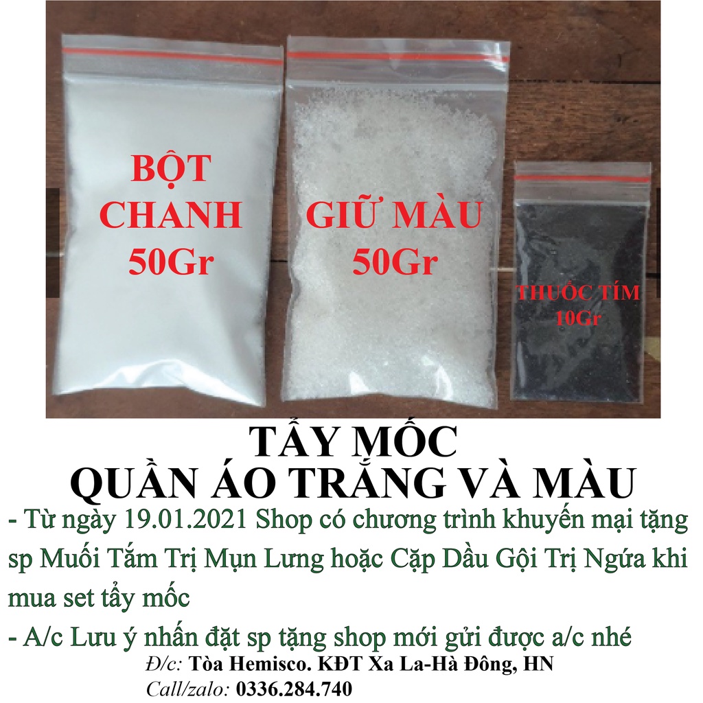 Tẩy Mốc Quần Áo Màu và Trắng Dân Gian Không Hại Da Tay, Gồm Thuốc Tím, Bột Chanh ( axit chanh ), Giữ Màu,Tẩy ố vàng, Mốc