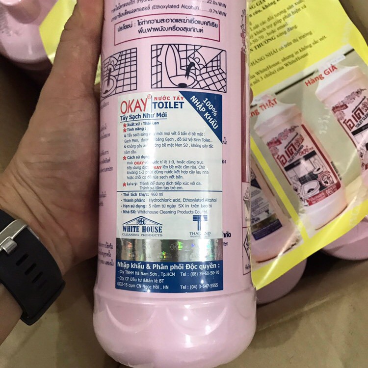 - Tên Sản Phẩm : Nước tẩy Toilet OKAY Thái Lan - Thể tích: 960ml/chai - Nhà sản xuất: Whitehouse Cleaning Products Co., Ltd - Xuất Xứ: Thái Lan. - Hạn sử dụng: 2025