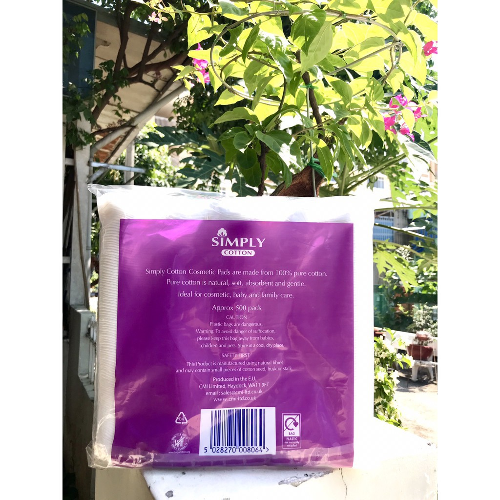 Bông Tẩy Trang Anh Quốc - Mềm Mại Không Tẩy SIMPLY Cotton Round Cosmetics Pad 500s (500 miếng)