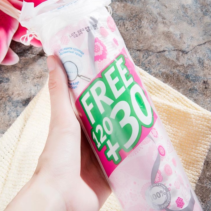 💘 ĐẶC ĐIỂM SẢN PHẨM: + Thiết kế miếng bông dạng tròn với 2 mặt giúp tận dụng tối đa sản phẩm. + Được làm từ 100% cotton thiên nhiên, an toàn và mềm mại với làn da, không để lại xơ bông trên mặt sau khi sử dụng. + Khả năng thấm hút tốt dung dịch, giúp bạn dễ dàng tẩy trang sạch lớp trang điểm như kem nền, phấn, son môi... + Giúp lau sạch lớp bã nhờn, bụi bẩn, tế bào chết, giúp làm sạch lỗ chân lông cho làn da thoáng mịn.