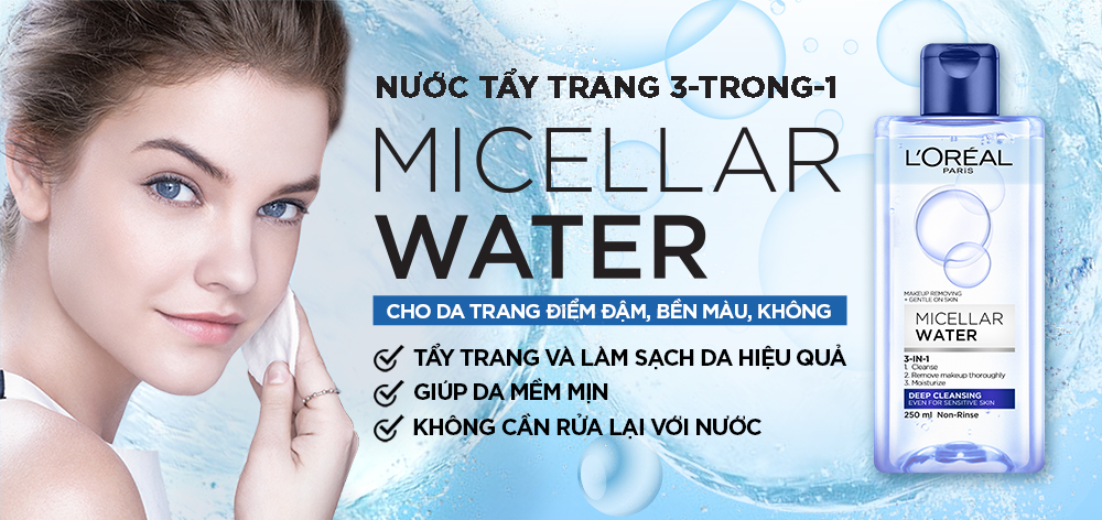 Với công nghệ mới, mang đến các tẩy trang, làm sạch, giữ ẩm và dưỡng mềm da đồng thời chỉ trong một sản phẩm. L'Oreal Paris 3-in-1 Micellar Water giúp lấy đi sạch cặn trang điểm nhưng không làm khô da. Hơn thế, thành phần an toàn và công nghệ tiên tiến giúp da giữ nước, thông thoáng, mềm mượt chỉ trong một bước.
