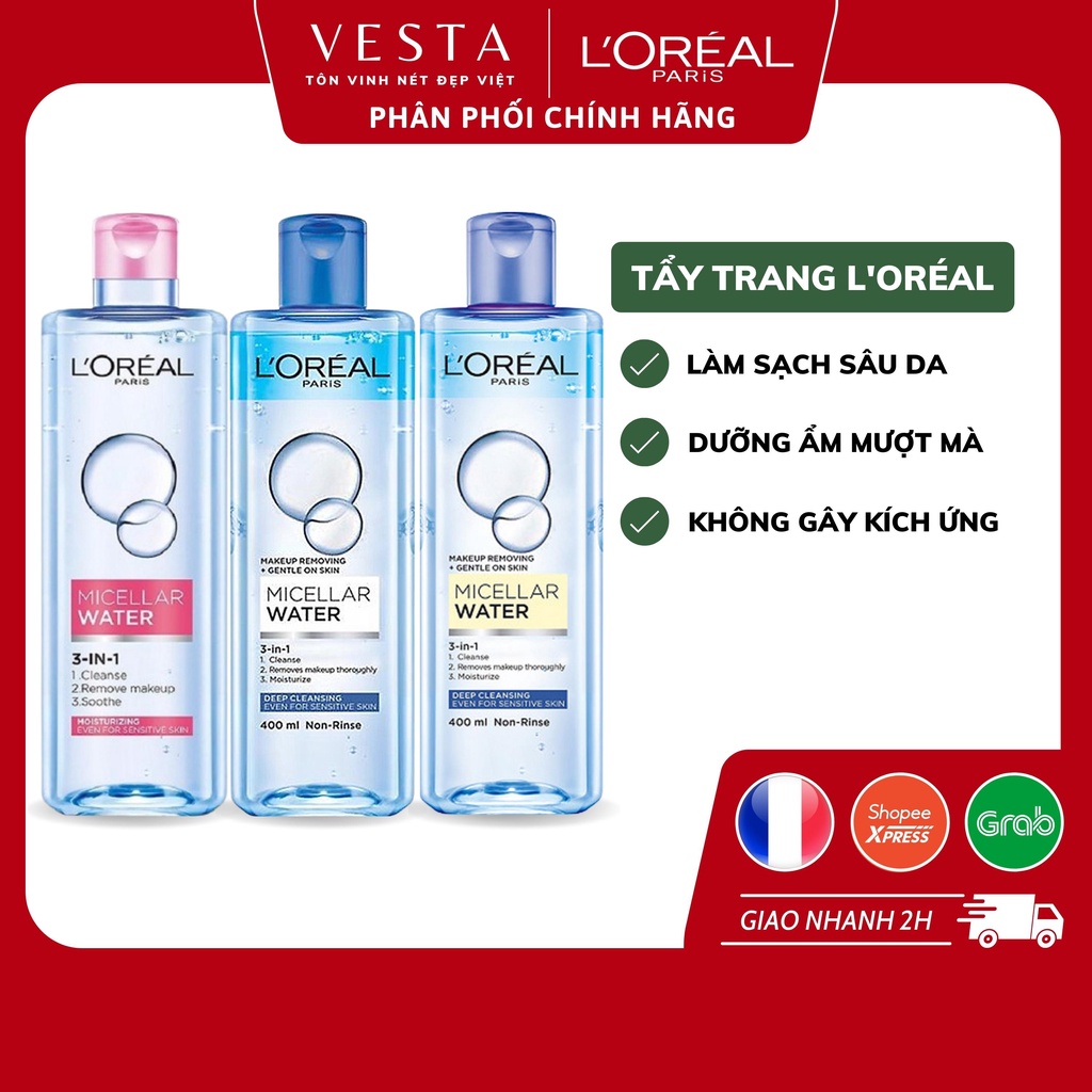 Nước tẩy trang loreal - tẩy trang L'oreal Micellar Water 400ml skincare dưỡng da