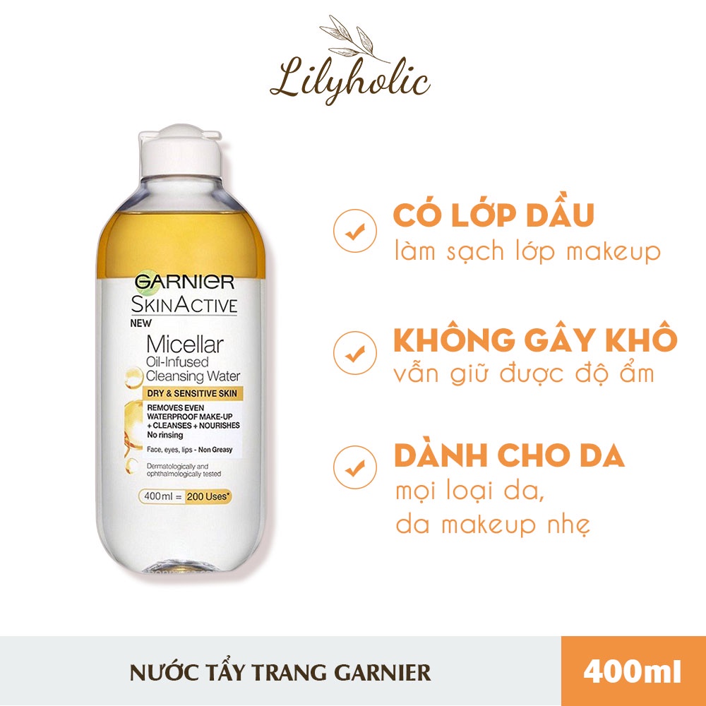 - Nước Tẩy Trang Cho Mọi Loại Da Garnier Skin Naturals Micellar Cleansing Water là dòng tẩy trang được tích hợp với công nghệ Micellar Water. Đây là dòng tẩy trang sử dụng công nghệ mixen (micellar technology), gồm có một nhóm phân tử hoạt động bề mặt, một đầu ưa nước và một đầu kị nước có thể hòa tan trong dầu.