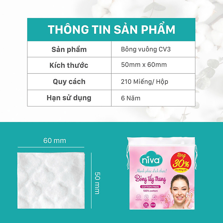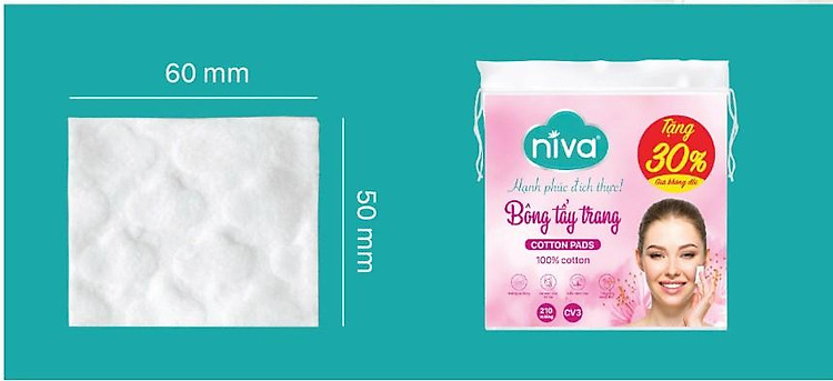 - Kích thước bông tẩy trang từ 50mm x 60 mm dễ dàng sử dụng.