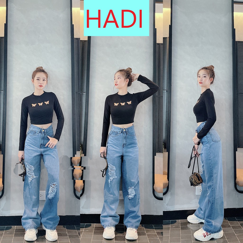 Giới thiệu [ TD3189 ] QUẦN JEAN ỐNG RỘNG NỮ LƯNG CAO RÁCH 2 MẢNG TO LOANG MÀU CAO CẤP HADI ĐỦ SIZE S, M, L FORM DÀI RỘNG SIÊU