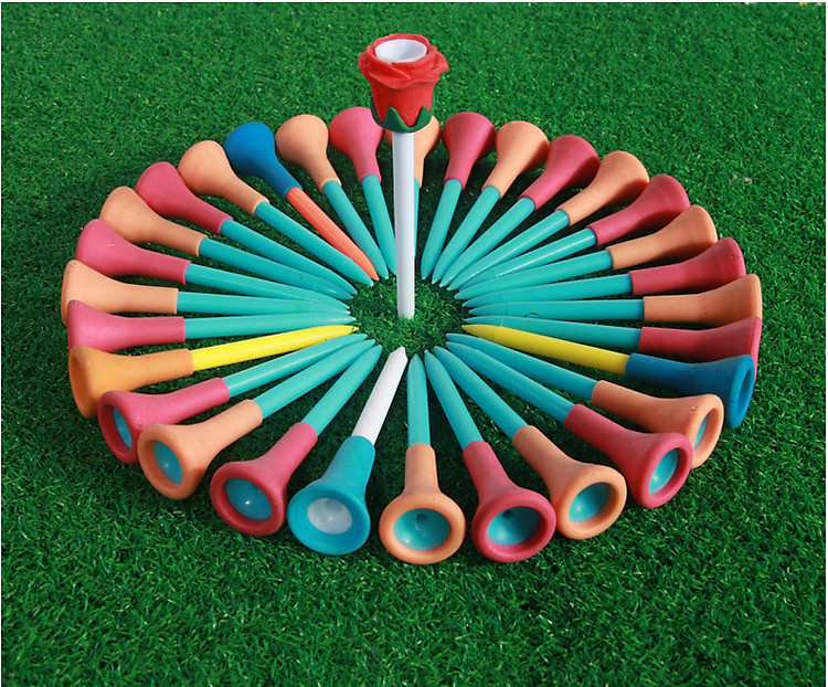 Tee Golf bằng nhựa trên đỉnh chỗ đặt bóng bọc cao su để giữ bóng khỏi rơi.