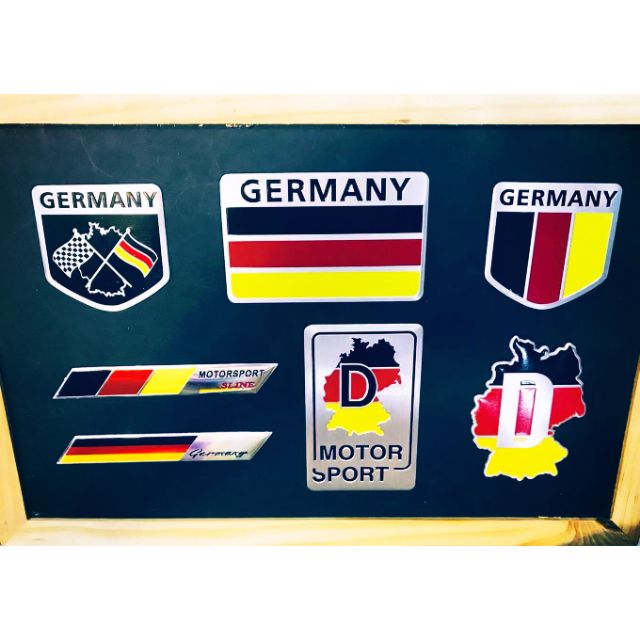 Ô tô > Phụ kiện ngoại thất ô tô > Hình dán, logo, huy hiệu || Bộ tem nhôm cờ Đức 7 cái