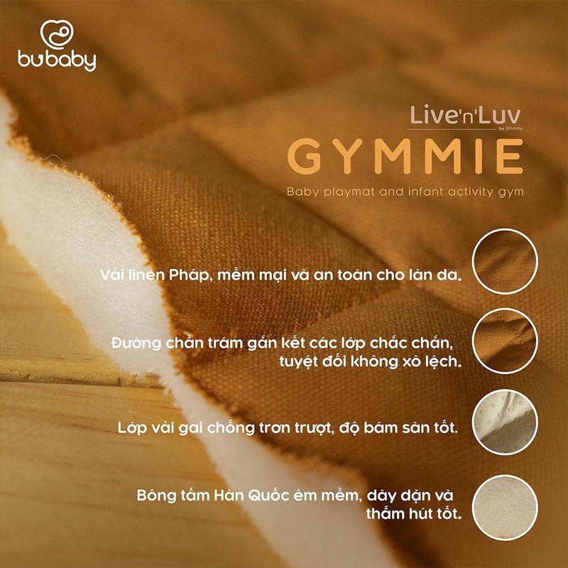 📢📢📢Xỉu Up⬆️ - Xỉu Down⬇️ với siêu phẩm nhà Bubaby 🎯 Thảm chơi đa năng GYMMIE - MUA 1 ĐƯỢC VÔ VÀN CÔNG DỤNG 🍃 Sàn nhà bẩn, nhiều vi khuẩn 👉 GYMMIE lo 🍃 Bé làm ướt nệm, thấm chăn 👉 GYMMIE lo 🍃 Ăn dặm vấy bẩn 👉 GYMMIE lo 🍃Tập lẫy, tập trườn 👉 GYMMIE lo 🍃 Massage, tắm nắng 👉 GYMMIE lo 🍃 Picnic bãi biển, thảm cỏ 👉 GYMMIE lo 🍃Thảm chơi, chăn đắp, đệm nằm 👉 đã có GYMMIE 🍃Giữ ấm lưng cho bé khi nằm đất 👉 đã có GYMMIE 🎯 Với cấu tạo 3 lớp bền chắc và chất liệu nhập khẩu cực xịn ☘️ Lớp bề mặt: vải Linen PHÁP cao cấp & sạch ☘️ Lớp giữa: bông tấm HÀN QUỐC dày dặn & thấm hút tốt ☘️ Lớp đáy: thiết kế chống trơn trượt 🎯 Mang lại những gì tốt nhất dành cho bé 🌱 Sản phẩm KHÔNG BỊ PHAI MÀU nên không gây hại cho da 🌱 DỄ DÀNG VỆ SINH ( hút bụi, giặt máy), mau khô và không lưu mùi 🌱 Bông trần chắc chắn, không sợ xô lệch khi giặt 🌱Được kiểm soát chặt chẽ bởi quy trình kiểm soát chất lượng của BU trước khi xuất xưởng 🌱 Túi đựng cực xinh iu.