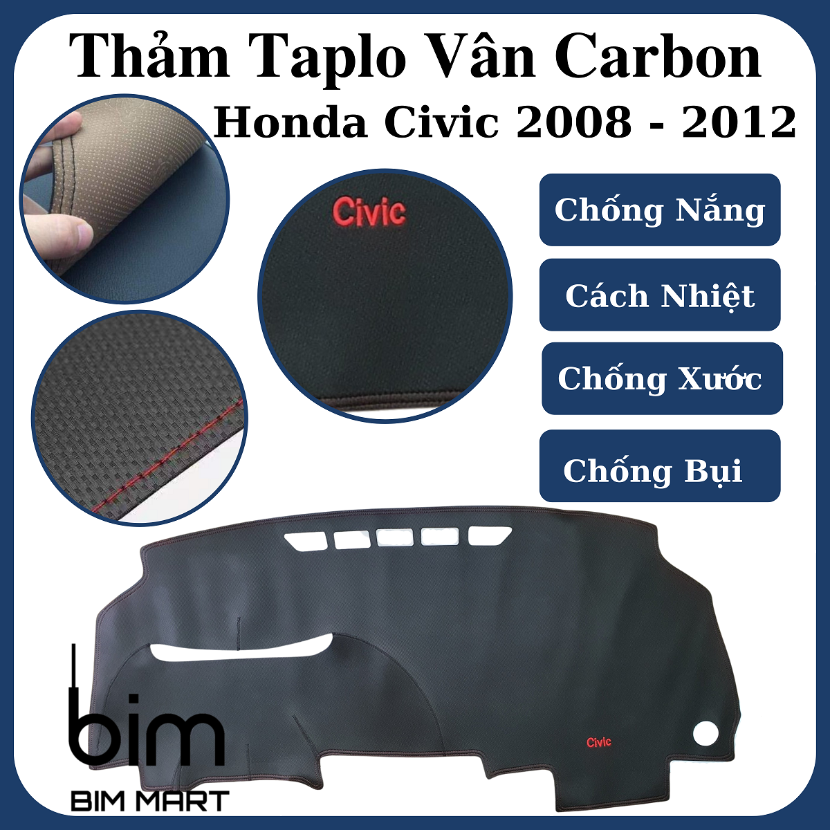 Thảm da Taplo Honda Civic 2008 - 2012 vân Carbon cao cấp là 1 trong những phụ kiện không thể thiếu cho xe. Thảm được thiết kế chuẩn form, cấu tạo bằng da Microfiber nhẹ, mềm, bền, dai. Mặt sau thiết kế các “hoa silicone” giúp tự bám dính vào bề mặt taplo mà không cần băng keo.Có tác dụng cách nhiệt, chống nóng, chống phản ánh nắng tốt. Đặc biệt bề mặt da mịn giúp dễ lau chùi cộng với khả năng không thấm nước khiến bạn có thể để chai nước hay bất cứ gì có nước mà không sợ bị thấm nước gây mùi hôi.