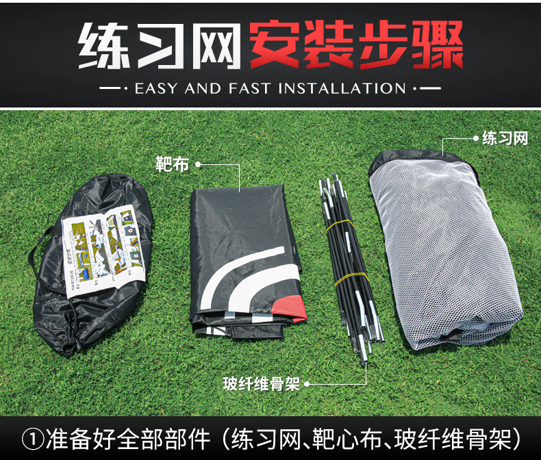 - Trọn bộ: 1 khung lưới gôm nhiều thanh Carbon ghép nối, phần lưới tập, 1 hồng tâm và 1 túi đựng trọn bộ lưới.