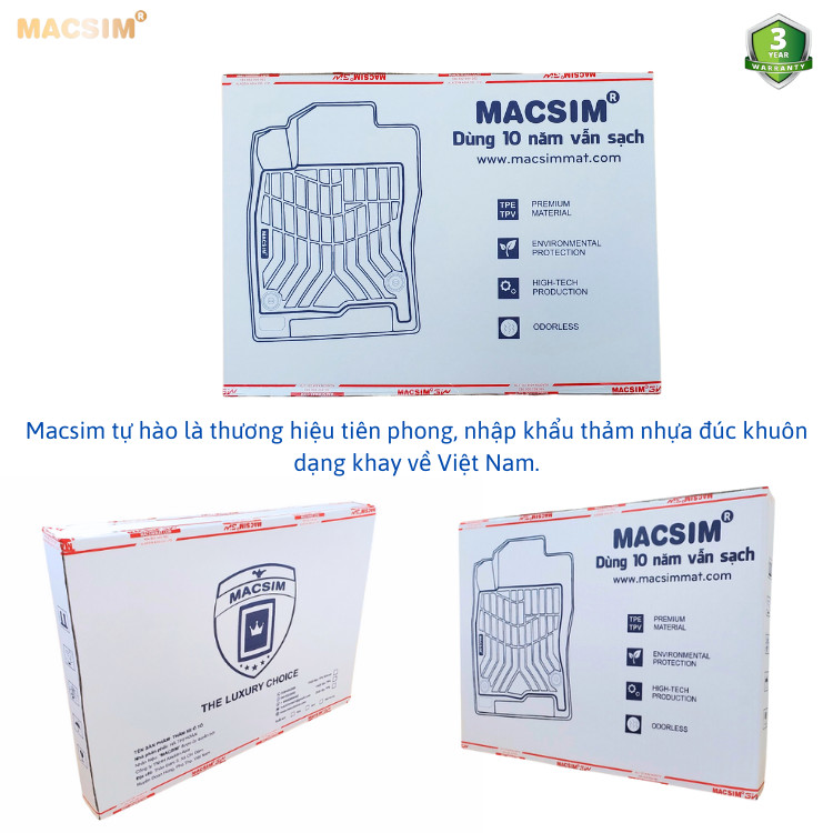 Thảm nhựa đúc khuôn ô tô là xu thế trên thế giới - là thảm lót sàn thế hệ mới với những ưu điểm vượt trội. Macsim tự hào là thương hiệu tiên phong, nhập khẩu thảm nhựa đúc khuôn dạng khay về Việt Nam. Đó là những sản phẩm thiết kế nguyên bản, chuẩn mực về chất lượng trong dòng thảm nhựa đúc khuôn ô tô trên thị trường. Macsim nỗ lực đem đến khách hàng sản phẩm chất lượng cao, sang trọng, thiết kế độc đáo từ các nhà máy hàng đầu trên thế giới.