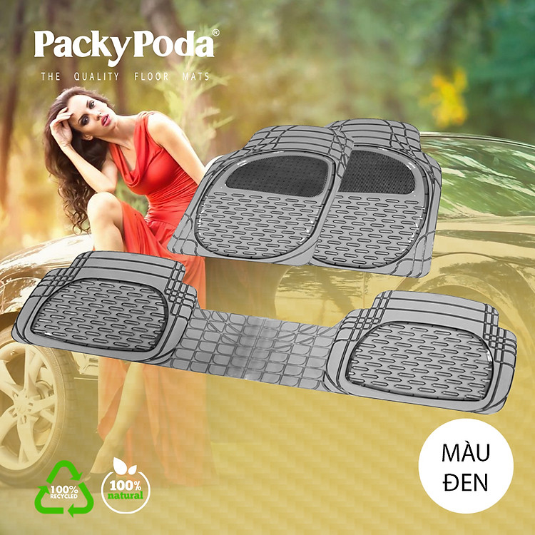 Thảm lót sàn ô tô PACKY PODA 6123 màu đen 4 chỗ với cấu tạo từ 100% nhựa PVC cùng thiết kế đường vân trên bề mặt giúp chống trượt hiệu quả trên xe, dễ dàng chùi rửa vệ sinh khỏi những vết bẩn đồng thời không để lại mùi hôi hay khó chịu.
