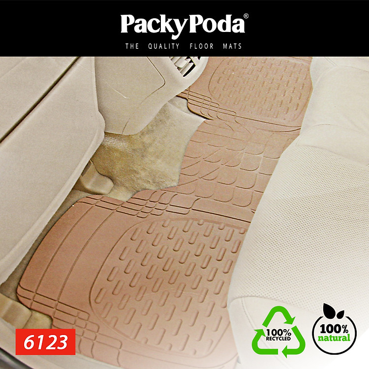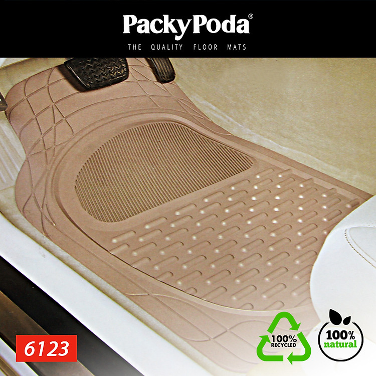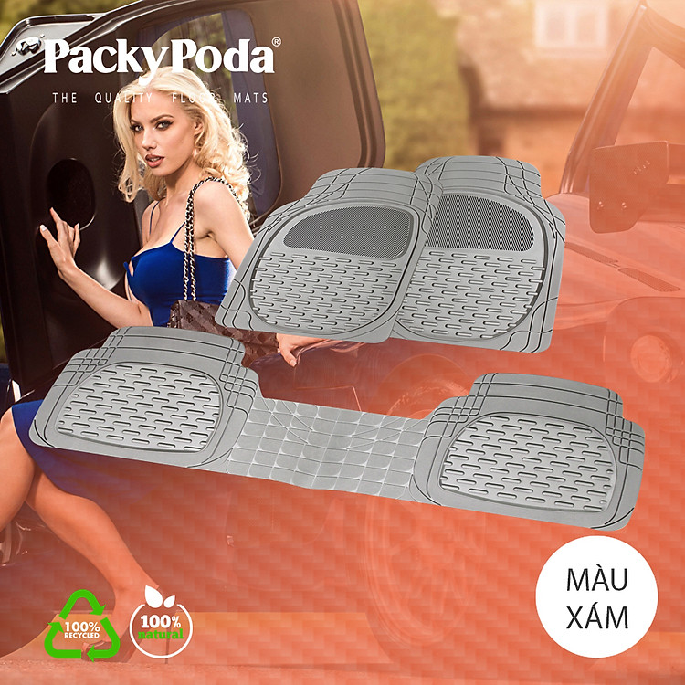 Thảm lót sàn ô tô PACKY PODA 6123 màu xám 4 chỗ với cấu tạo từ 100% nhựa PVC cùng thiết kế đường vân trên bề mặt giúp chống trượt hiệu quả trên xe, dễ dàng chùi rửa vệ sinh khỏi những vết bẩn đồng thời không để lại mùi hôi hay khó chịu.