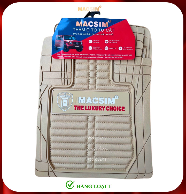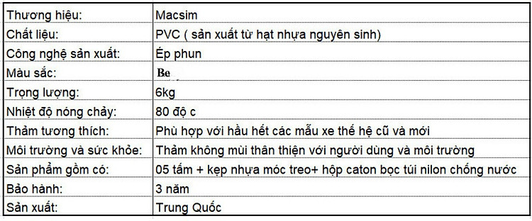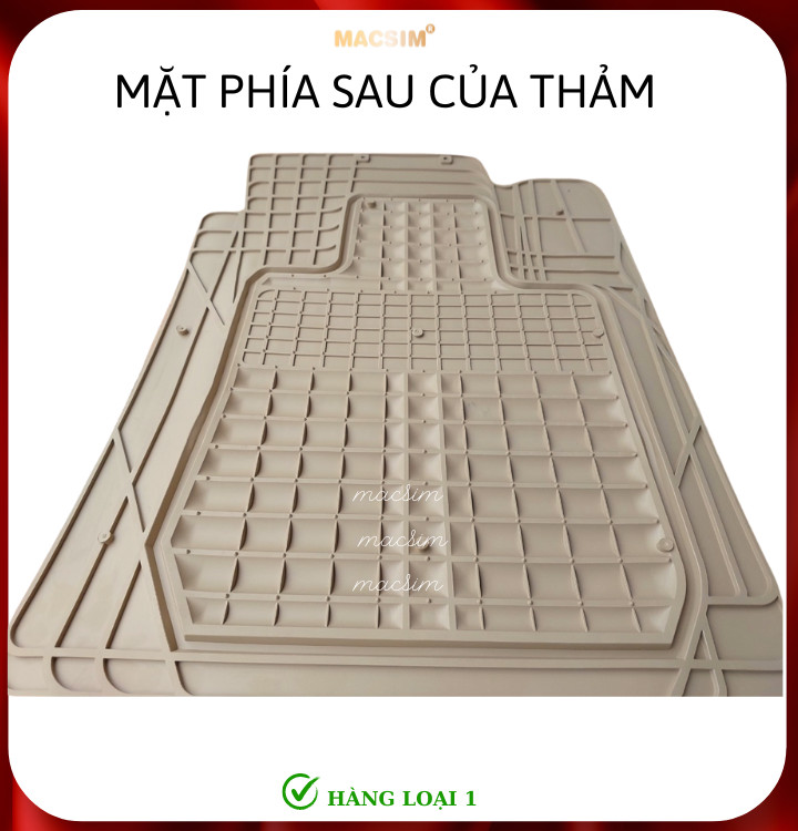 Tấm Thảm lót sàn ô tô đúc khuôn Macsim được thiết kế dạng khay, sử dụng nhựa nguyên sinh Polyvinyl clorua (PVC) và cao su giúp tăng độ mềm và dẻo dai cho tấm thảm.