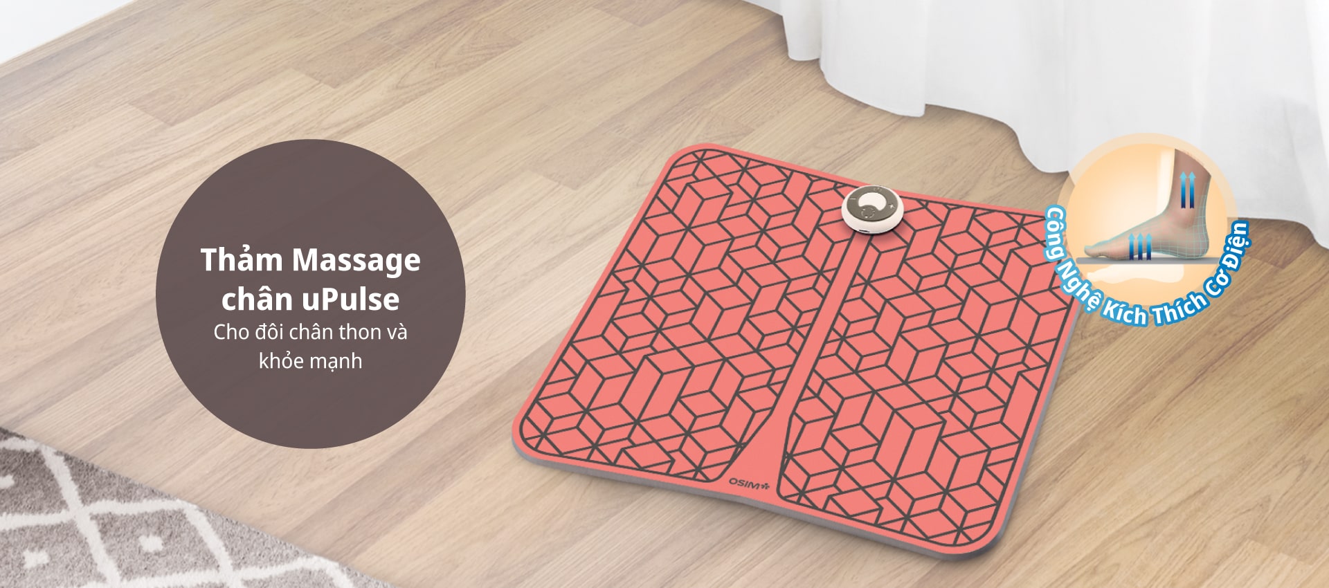 OSIM uPulse Mat tạo ra các xung điện sinh học EMS giúp giảm đau, cải thiện lưu thông máu, săn chắc cơ bắp và giảm thời gian phục hồi cơ của đôi chân sau khi vận động mạnh