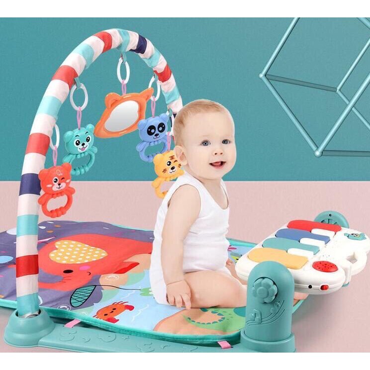 -Thảm nhạc cho bé có thanh treo đồ chơi giúp bé kích thích được các giác quan như xúc giác, thị giác, thính giác
