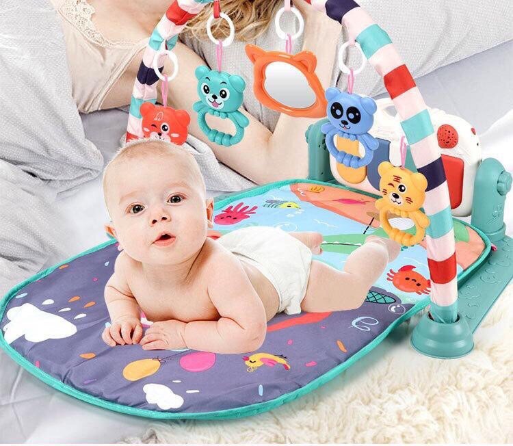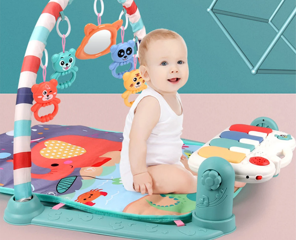 Thảm đàn có nhạc Baby Gym Mat với kho âm nhạc vui nhộn, phát ra âm thanh sinh động khi bé chạm vào. Chất liệu nhựa nguyên sinh, không chứa BPA an toàn cho bé. Kết hợp khung treo xúc xắc với hình thú ngộ nghĩnh, kích thích thị giác của bé. Tăng cường sự vận động của bé, giúp bé phát triển thể chất và trí não.