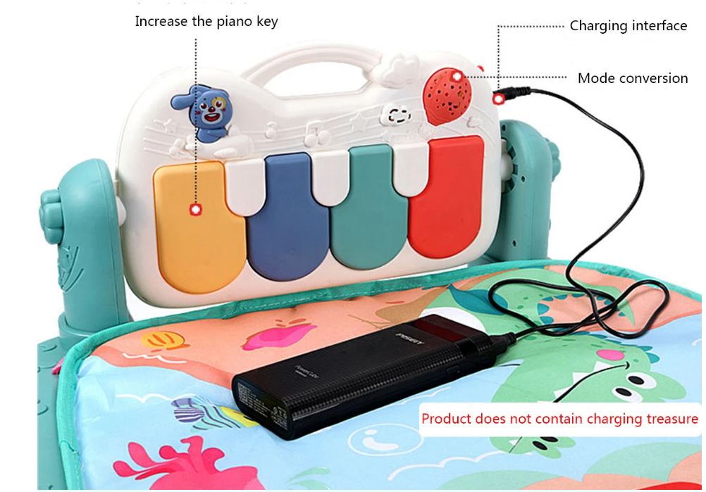 - Đàn piano trên thảm với kho nhạc vui nhộn phát ra âm thanh sinh động mỗi khi bé chạm vào.