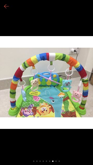 Thảm có phẩn treo thú bên trên cho bé tập trung quan sát, phần piano ở dưới có phát nhạc, phát đèn cho bé yêu