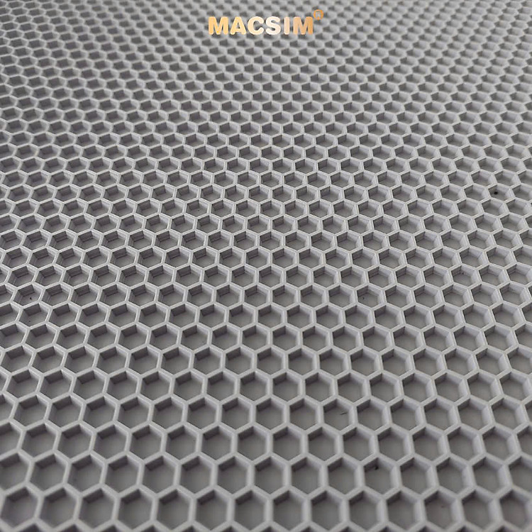 Lớp 2: Thảm tổ ong giấu bụi bằng cao su PBR (Polybutadiene Rubber): Chất liệu cao su PBR dẻo dai, độ đàn hồi cao, chống mài mòn cực tốt, không mùi, thân thiện với môi trường và sức khỏe. Thiết kế tổ ong 3D thông minh giúp giấu bụi, giữ lại rác và đất cát mà không bị lộ ra ngoài. Khả năng bám sàn tốt, giúp thảm không bị xô lệch khi sử dụng. Có thể tháo rời dễ dàng để vệ sinh riêng, giữ cho lớp dưới luôn sạch sẽ.