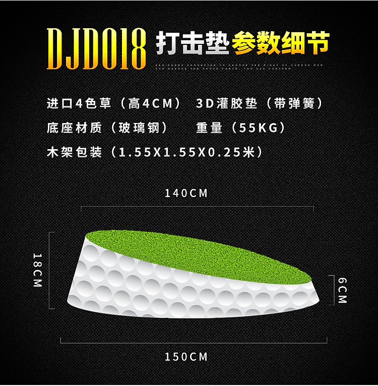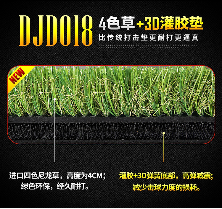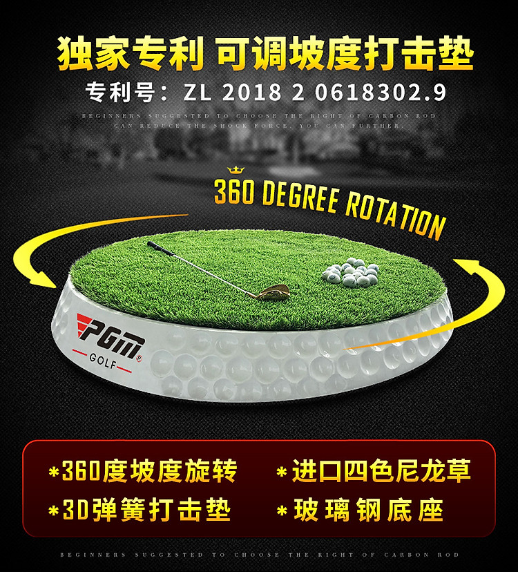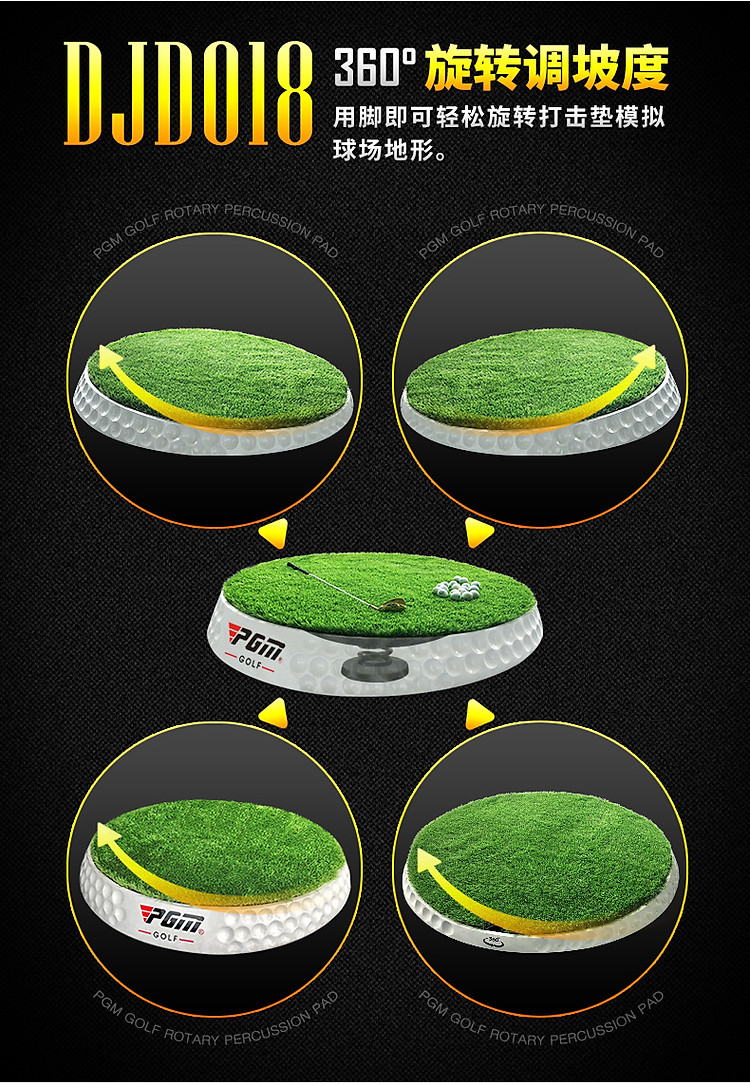 - Thảm Golf truyền thống chỉ có một chức năng duy nhất, chỉ có thể thực hiện các bài tập đánh bóng ngang. Nhưng thảm DJD018 có lớp đế lò xo PGM 3D xoay được theo ý muốn, mô phỏng được địa hình cao thấp của sân Gôn, đa dạng các loại bài tập.