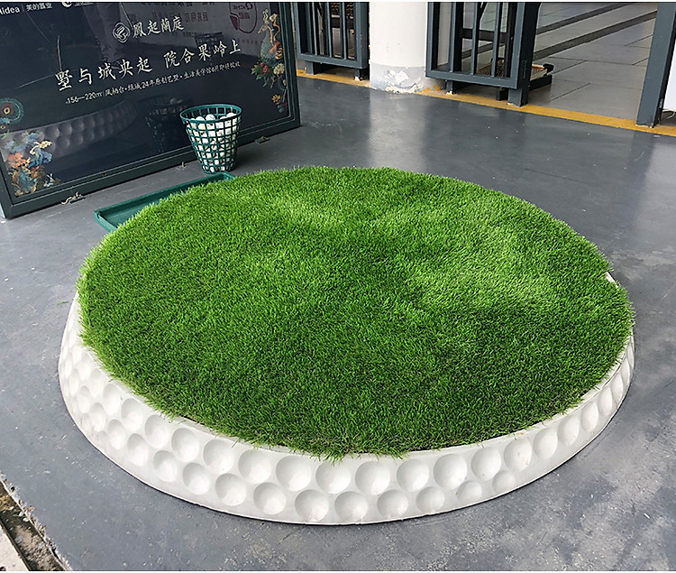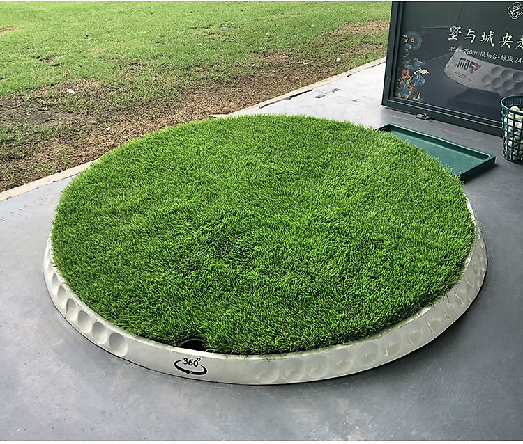 - Cấu tạo: Đế thảm là dạng bệ tròn được đúc định hình sẵn, đáy lò xo 3D chịu lực tốt bệ đỡ thảm cho phép thảm xoay 360°. Bề mặt phía trên là lớp cỏ nhân tạo với lớp đế Eva được gắn keo vô cùng chắc chắn.