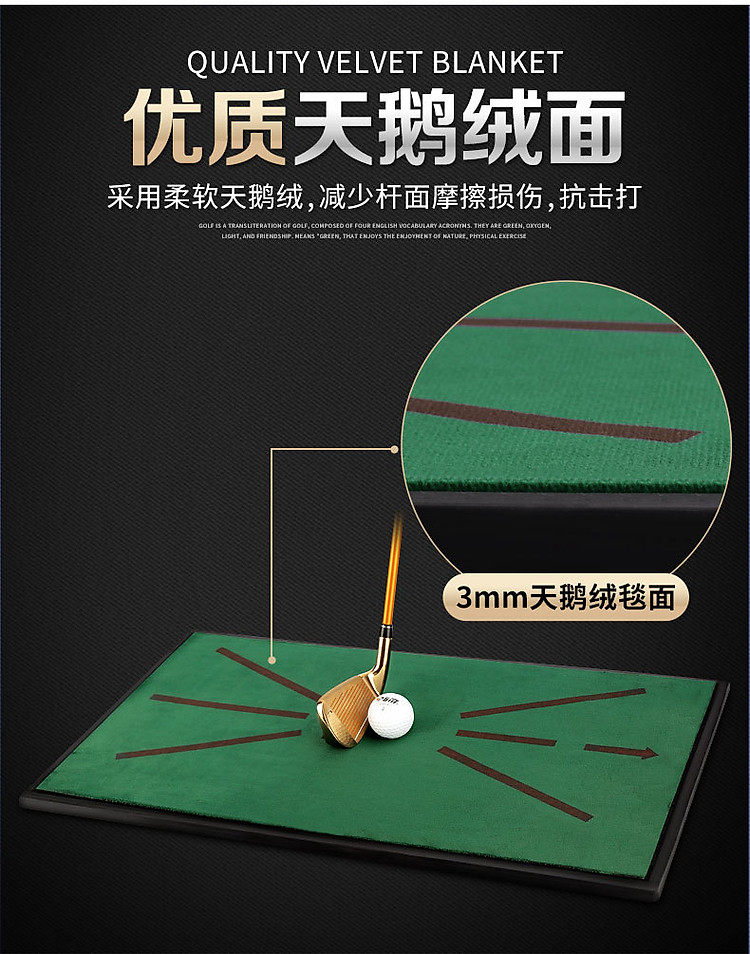 - Mặt đế cao su EVA có độ đàn hồi rất cao, bề mặt thảm cỏ mềm mịn giúp người chơi có vị trí đứng thoải mái khi thực hành cú Swing trên mặt thảm, dễ dàng hoàn thành việc tập luyện.