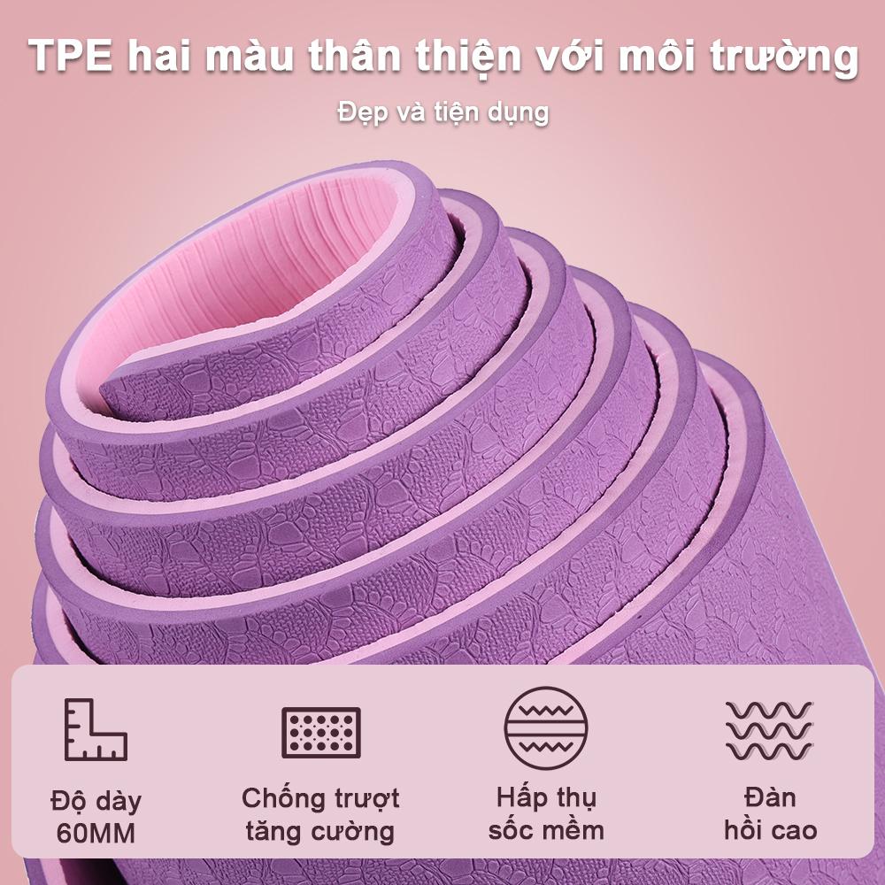 - Thảm tập yoga Chống trượt siêu bám với chất liệu TPE cao cấp từ cao su non với đặc tính thân thiện môi trường, an toàn sức khỏe.