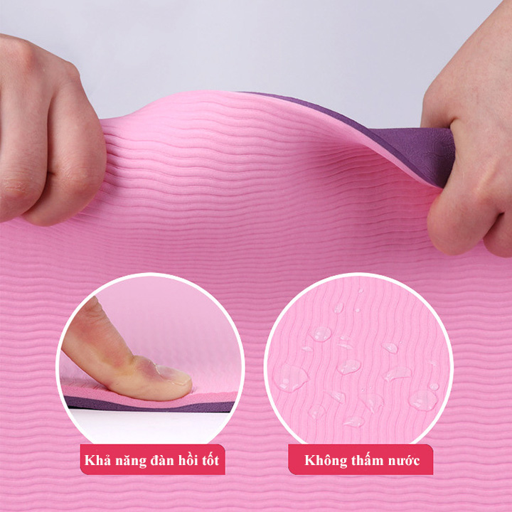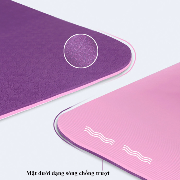 Chất liệu: Thảm được làm bằng chất liệu TPE, một loại mút xốp đàn hồi nhiệt dẻo thay thế cho dòng thảm làm bằng chất liệu PVC, giúp thảm có độ mềm mại và độ bám dính tốt, không độc hại, không kích ứng da, thân thiện với môi trường.