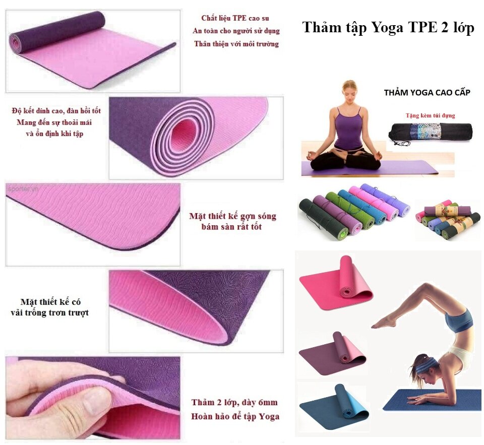 Thảm yoga là một loại dụng cũ hỗ trợ trong việc tập luyện, giúp bạn có thể hoàn thành tốt các bài tập yoga, cũng như là để bảo vệ bạn khỏi các chấn thương khi da và các khớp tiếp xúc với nền sàn, hay là các không gian tập luyện khác.