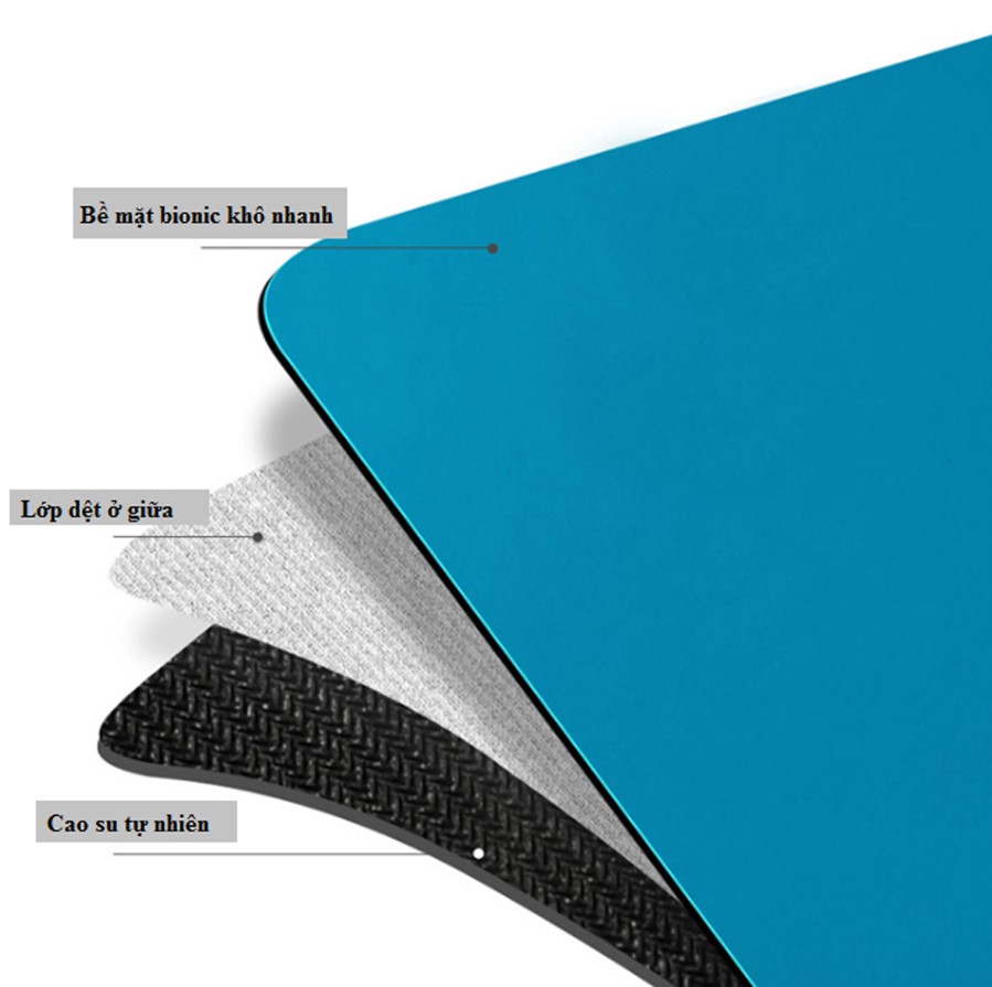 Ưu việt: Đế thảm được làm từ cao su thiên nhiên và đặc biệt thảm yoga định tuyến được cấu tạo 4 lớp đệm đàn hồi, êm ái, bảo vệ tối ưu khung xương khi tập các động tác gây áp lực cho xương.