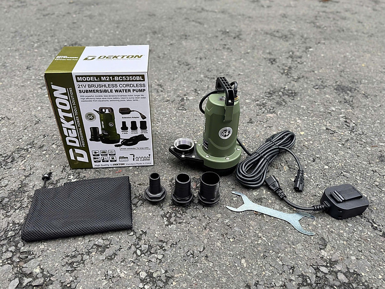 Máy bơm nước chìm pin Dekton M21-BC5350BL là giải pháp bơm hút nước linh hoạt và mạnh mẽ, thuộc hệ sinh thái chân pin phổ thông M21. Máy sử dụng động cơ không chổi than (Brushless) hiện đại, giúp máy vận hành bền bỉ, êm ái và không lo chập cháy chổi than khi làm việc trong môi trường nước. Với thiết kế màu Olive chuyên nghiệp, sản phẩm cực kỳ hữu ích cho việc bơm nước tầng hầm bị ngập, tưới tiêu nông nghiệp, hút nước bể bơi hay xử lý nước thải gia đình ở những nơi không có nguồn điện. M21-BC5350BL sở hữu hiệu năng đáng nể với lưu lượng hút tối đa đạt 5.35m3/h và khả năng đẩy cao lên đến 10m (hoặc đẩy ngang tới 160m). Máy đi kèm dây cáp dài 7m, cho phép thả chìm sâu vào nguồn nước một cách an toàn. Điểm tiện dụng nhất của sản phẩm chính là bộ 3 đầu ống nối đi kèm với nhiều kích cỡ khác nhau (1 inch, 1.5 inch và 2 inch), giúp người dùng dễ dàng kết nối với các loại ống dẫn có sẵn trên thị trường. Thông số kỹ thuật: - Mã sản phẩm: M21-BC5350BL - Hệ pin: M21 (Chân pin phổ thông) - Động cơ: Brushless (Không chổi than) - Lưu lượng hút tối đa: 5.35 m3/h - Khả năng đẩy đứng: 10m - Khả năng đẩy ngang: 160m - Chiều dài dây cáp: 7m - Phụ kiện đi kèm: 3 đầu ống nối (25.4mm / 38mm / 50mm) - Màu sắc: Olive (Xanh Oliu) - Hãng sản xuất: Dekton - Bảo hành: 06 tháng