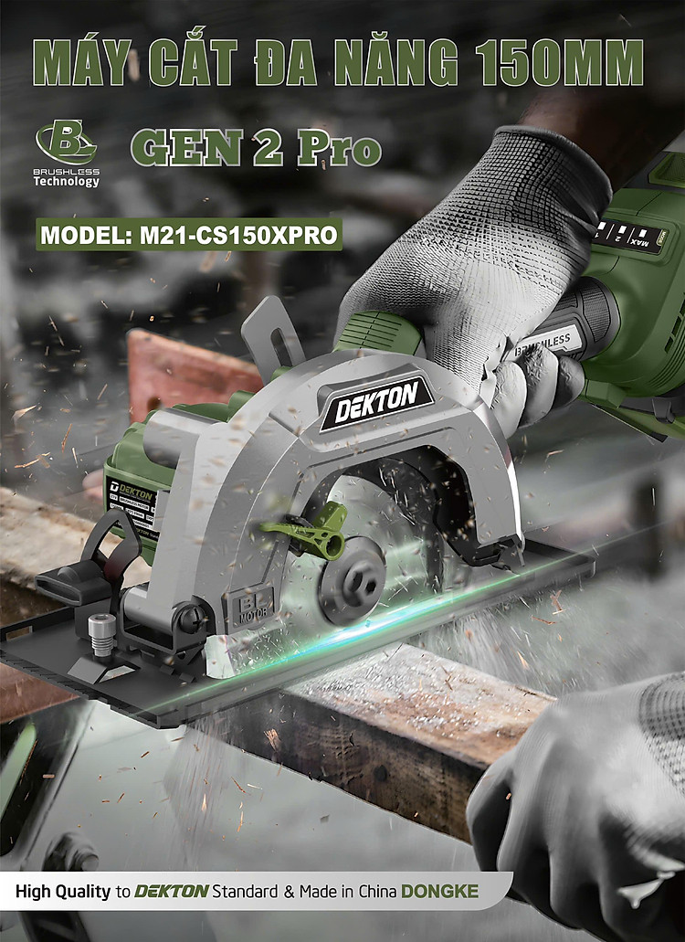 Máy cưa đĩa dùng pin Dekton M21-CS150XPRO là phiên bản nâng cấp thuộc dòng X-Series, được thiết kế chuyên dụng cho các công việc cắt đa năng, đặc biệt là cắt kim loại và hợp kim. Máy nổi bật với tông màu Olive (Xanh Oliu) cá tính, mạnh mẽ, mang lại phong cách chuyên nghiệp cho người sử dụng. Trái tim của máy là động cơ không chổi than (Brushless) hiệu suất cao, giúp máy vận hành ổn định, không lo cháy chổi than và cực kỳ tiết kiệm năng lượng. M21-CS150XPRO cho phép người thợ làm chủ hoàn toàn đường cắt nhờ tính năng điều chỉnh 3 cấp tốc độ linh hoạt (3000/4500/6400 RPM). Điều này giúp tối ưu hóa việc cắt các loại vật liệu khác nhau mà không làm hỏng lưỡi cưa hay bề mặt cắt. Với lưỡi hợp kim 150mm đi kèm, máy đạt độ sâu cắt thẳng 90 độ lên tới 55mm, đáp ứng tốt hầu hết các loại thép hộp, ống kim loại và gỗ dày trên công trường. Bộ sản phẩm cũng chú trọng đến sự an toàn khi tặng kèm kính và găng tay bảo hộ chất lượng cao. Thông số kỹ thuật: - Mã sản phẩm: M21-CS150XPRO - Hệ pin: M21 (Chân pin phổ thông) - Động cơ: Brushless (Không chổi than) - Điều chỉnh tốc độ: 3 cấp (3000 - 4500 - 6400 RPM) - Đường kính lưỡi: 150 mm - Khả năng cắt sâu: 90 độ (55mm) / 45 độ (39mm) - Phụ kiện đi kèm: 01 lưỡi cắt hợp kim 150mm, 01 kính bảo hộ, 01 đôi găng tay bảo hộ - Màu sắc: Olive (Xanh Oliu) - Hãng sản xuất: Dekton - Bảo hành: 06 tháng