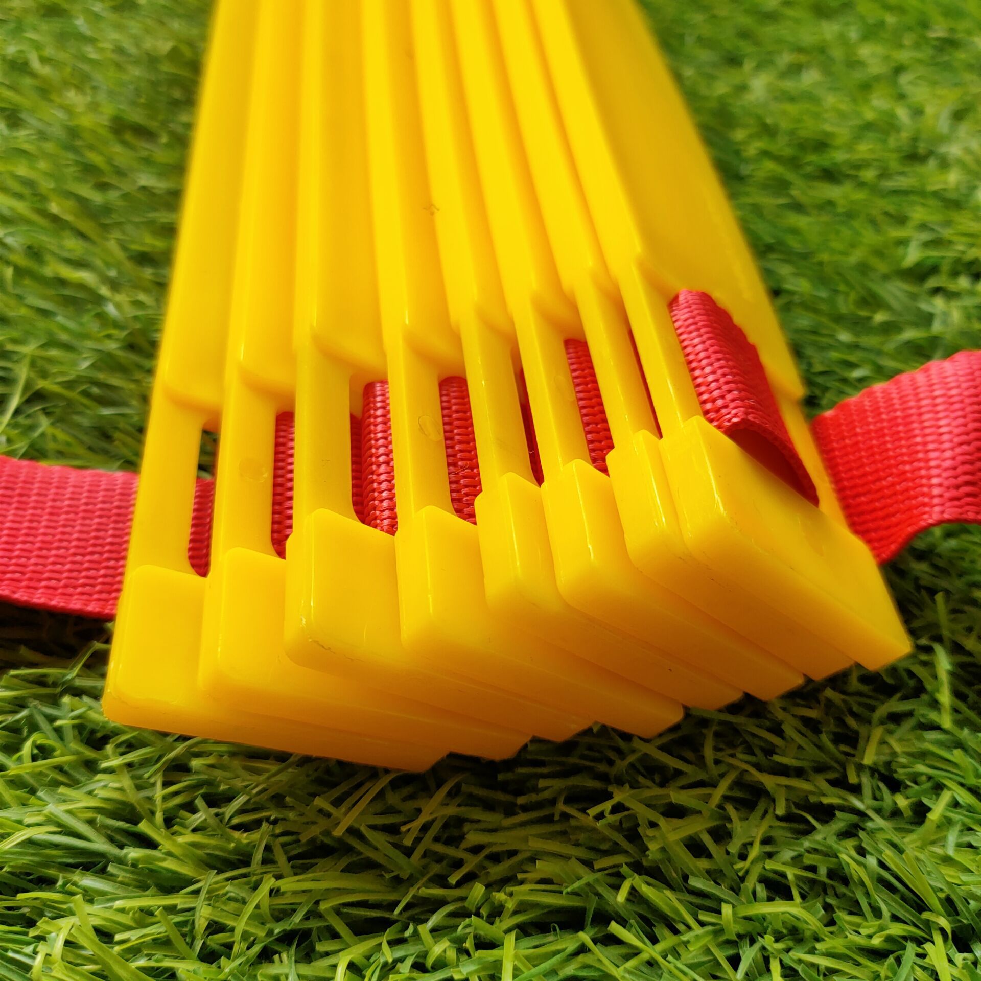Thang rèn luyện sự nhanh nhẹn có thể được cất gọn trong túi đựng đi kèm và mang ra ngoài.