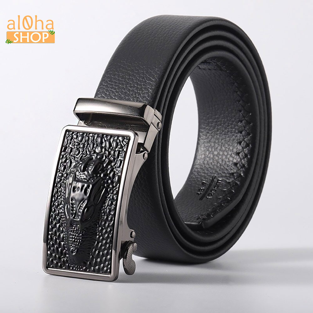 Thắt lưng da nam mặt da cá sấuu cao cấp khoá tự động - al0ha Shop