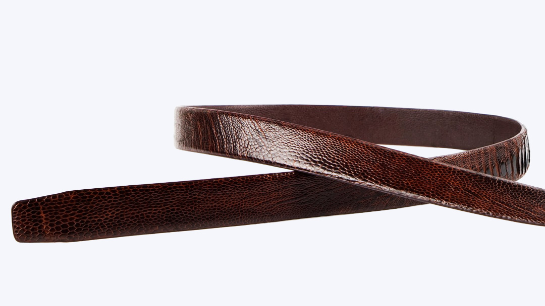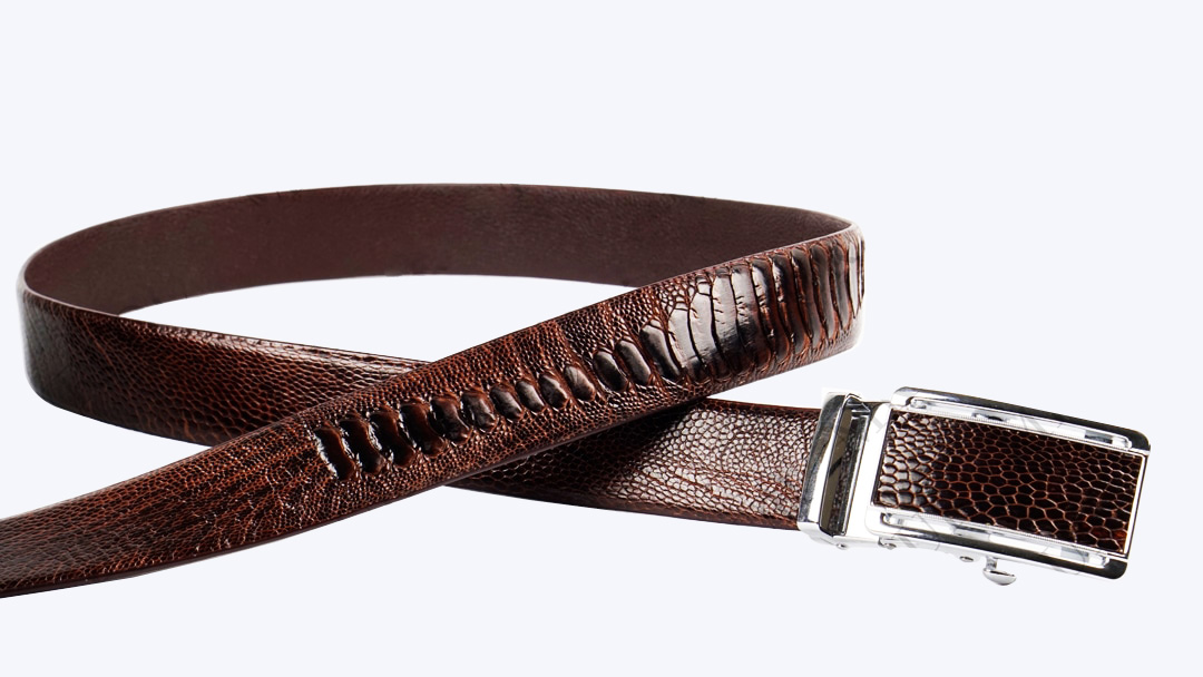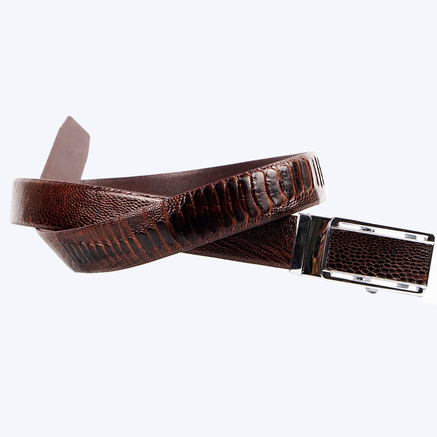 Thắt lưng nam da đà điểu màu nâu cao cấp, được làm từ phần da chân của con đà điểu kết hợp với thuộc da thủ công, độ dẻo dai của da chân đà điểu là vua trong các loại da.