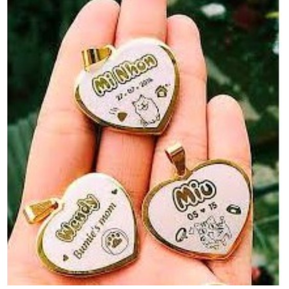 Thẻ khắc tên theo yêu cầu hình trái tim cho chó mèo (chất liệu inox)Thẻ khắc tên theo yêu cầu hình trái tim cho chó mèo (chất liệu inox) Giá FDC