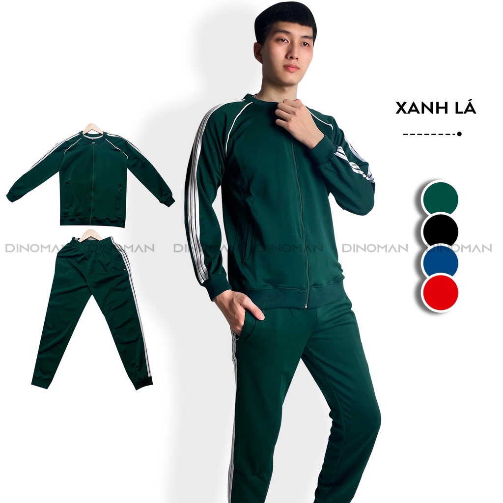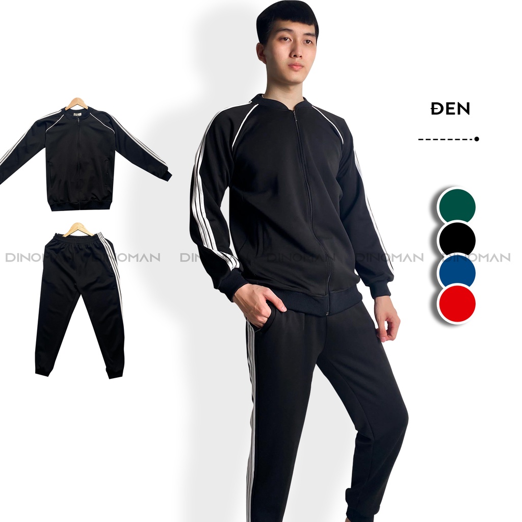Giới thiệu Bộ Đồ Thể Thao Nam DINOMAN Quần Áo Nỉ Cao Cấp Sọc Kẻ Trắng Có Khóa Kéo Khỏe Khoắn Nam Tính