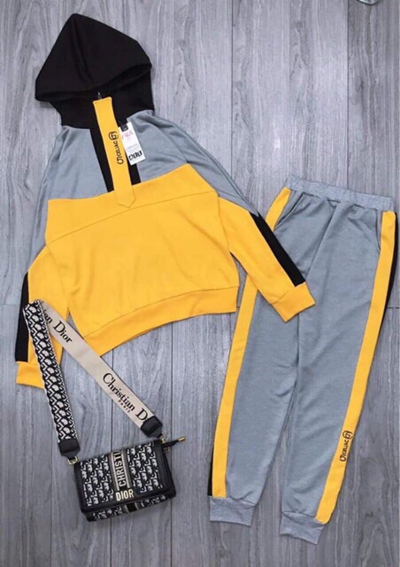 Bộ thể thao nữ màu sắc lạ mắt phối xám Được thiết kế bo gấu ở bộ phận tay áo và gấu quần mang lại phong cách trẻ trung năng động cho người mặc, phần in chữ trên nền màu sắc vàng nổi bật, mũ phối xanh than và thêm gam màu ghi tôn da ...tất cả đã tạo nên một bộ thể thao nữ phối vàng cao cấp với giá thành hợp lí , với style thu đông mới lạ ....