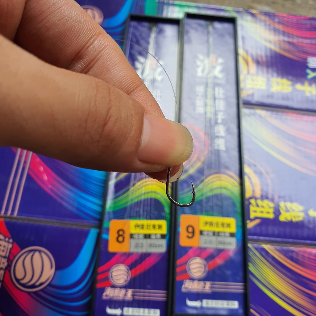 có các size: - lưỡi không ngạnh số 2 + dây 1.5 dài 60cm - lưỡi không ngạnh số 3 + dây 2.0 dài 60cm - lưỡi có ngạnh số 8 + dây 2.0 dài 60cm - lưỡi có ngạnh số 9 + dây 2.0 dài 60cm - lưỡi có ngạnh số 10 + dây 2.0 dài 60cm - - lưỡi có ngạnh số 11 + dây 2.5 dài 60cm