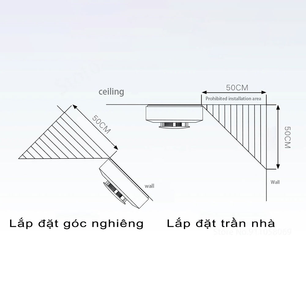 Sản phẩm hỗ trợ 2 phương thức cài đặt, cực đơn giản và thuận tiện, có thể được bắt bằng vít hoặc dán tường, tùy vào nhu cầu của người dùng. Báo động nên được lắp trên trần nhà hoặc đặt ở góc nghiêng; nếu nó lắp đặt trên mái dốc thì góc nghiêng không được lớn hơn 45° và khoảng cách tối nhất là 50cm.