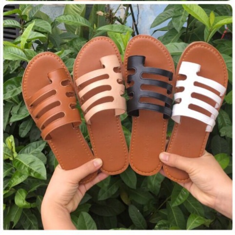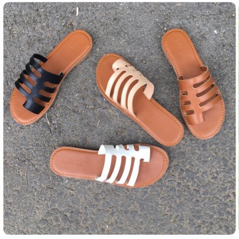 Giới thiệu [Thời Trang] Dép xỏ ngón nữ dây mảnh NALLDOS quai da Microfiber, đế thấp TPR chống trượt 4 màu (Đen, Bò, Trắng, Kem)