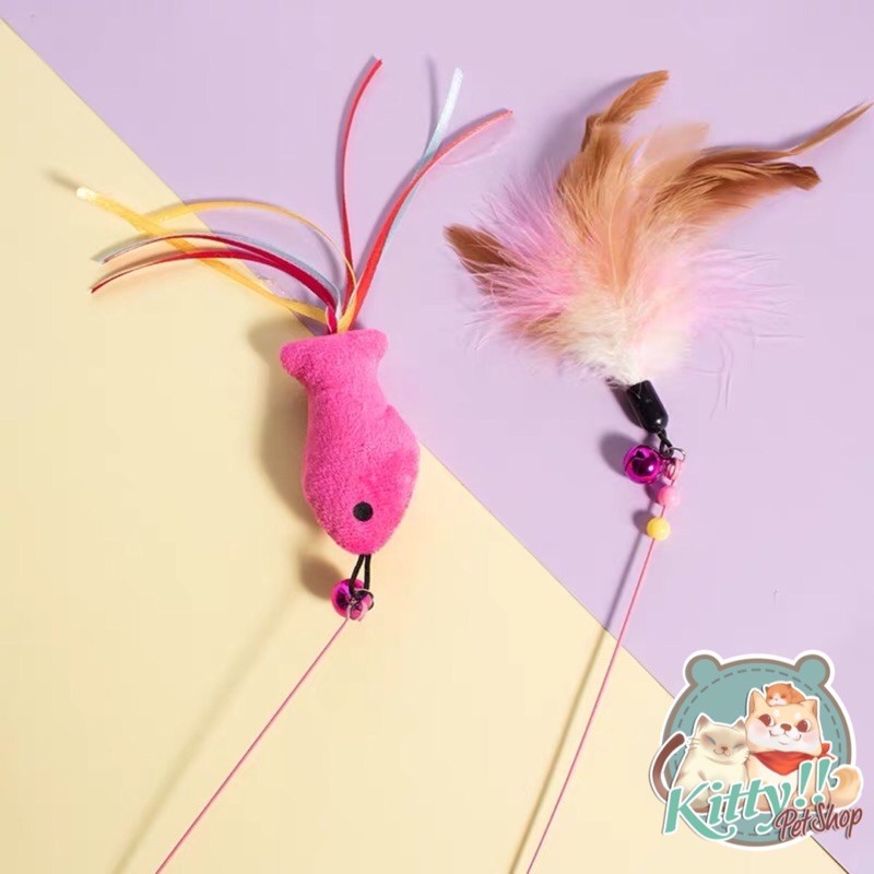 Giới thiệu Đồ chơi thú cưng: cần câu dây thép có chuông, đồ chơi tương tác cho chó mèo, cần câu mèo - Kitty Pet Shop