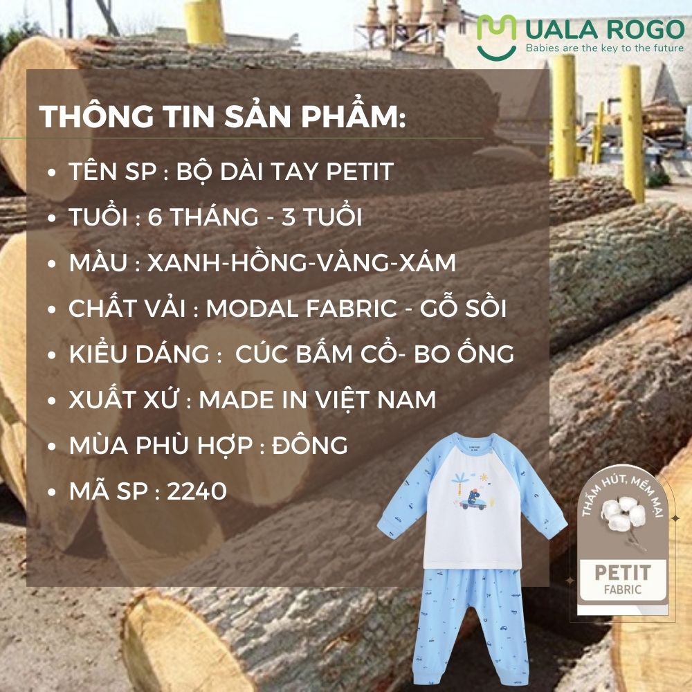 Thời trang trẻ em & trẻ sơ sinh > Quần áo trẻ em > Bộ quần áo || Quần áo bé trai dài tay MỎNG Ualarogo 6 tháng-3 tuổi vải Petit cúc bấm cổ thu đông họa tiết động vật 2240