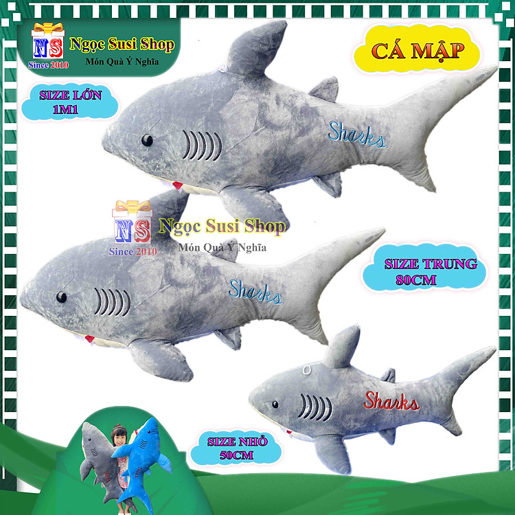 THÚ NHỒI BÔNG CÁ MẬP SHARK SIÊU TO KHỔNG LỒ CHO BÉ ÔM NGỦ - GẤU BÔNG CÁ MẬP SHARK SIÊU MỀM MỊN CAO CẤP